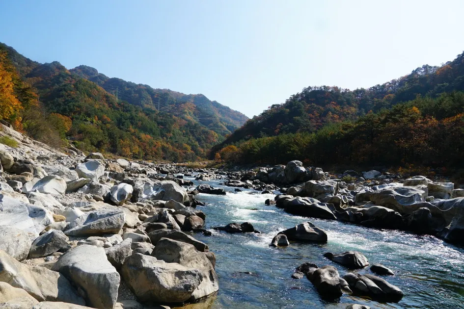 내린천은 강원도의 깊은 산속을 흐르는 맑은 물이 매력적인 곳이에요. 특히 상류 지역은 계곡 바닥의 자갈과 모래가 맑은 물과 어우러져 여름철 물놀이 장소로 최적입니다. 계곡 주변으로 울창한 숲이 있어 물놀이 후에는 시원한 나무 그늘 아래에서 피크닉을 즐기거나 간단한 캠핑을 할 수도 있어요. 래프팅으로 유명한 내린천이지만, 한적하고 조용한 공간도 많아 가족 단위 여행객에게 인기가 좋습니다.