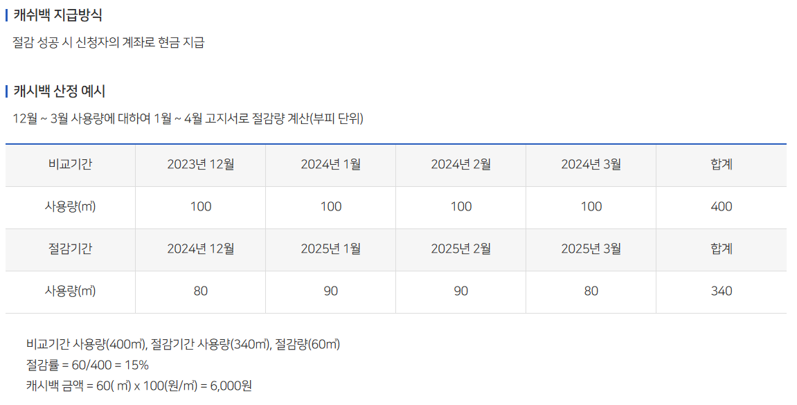 주택난방용 도시가스 요금제 사용자를 대상으로 동절기 도시가스 사용량 감축을 위해 운영하는 제도로 동절기(12~3월) 동안 전년도 사용량보다 3%* 이상 절약하면 절감량에 따라 현금으로 돌려주는 제도입니다. (30%한도, 10원단위 절사)