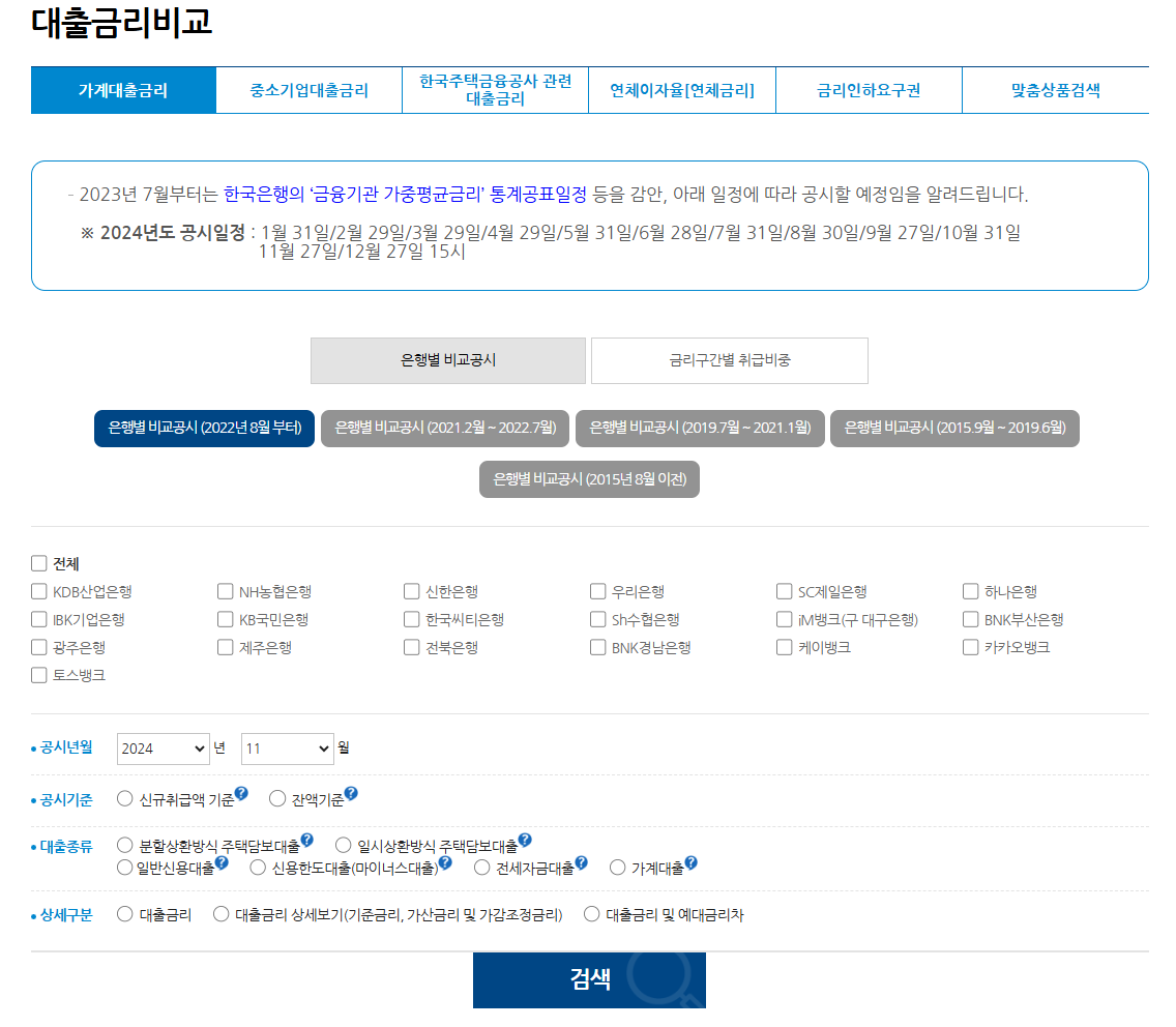 - 은행연합회 소비자포털: 대출금리비교 페이지에서 은행별 가계대출 금리를 비교할 수 있습니다.