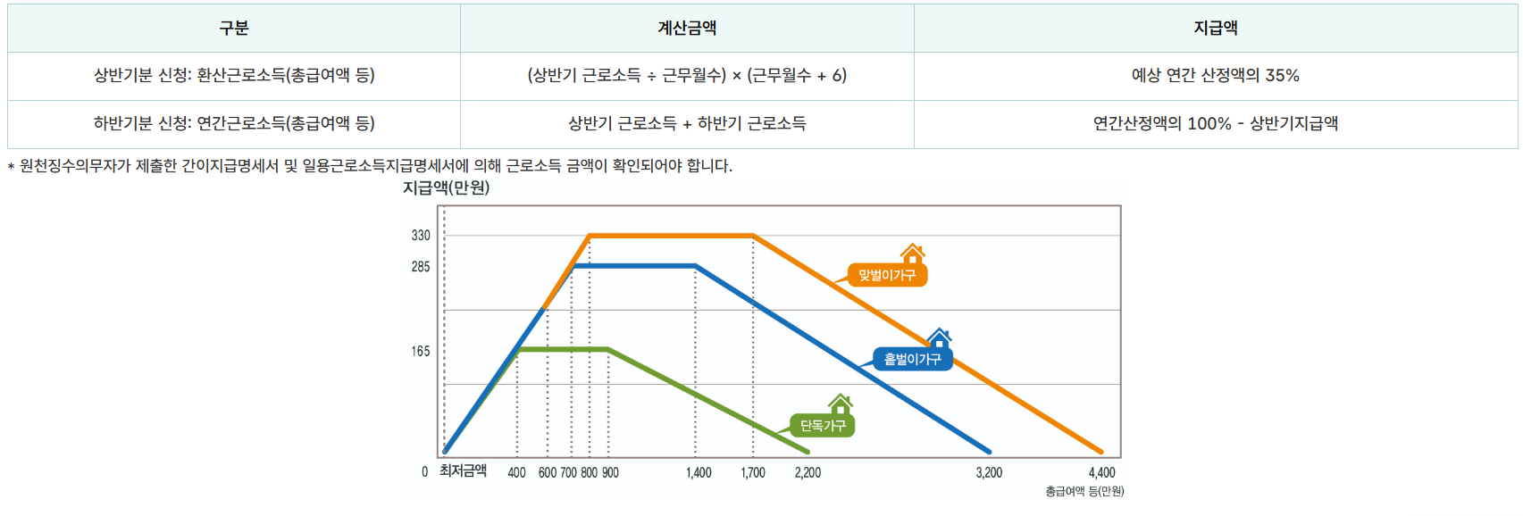 근로장려금 반기신청 지급액 산정방법