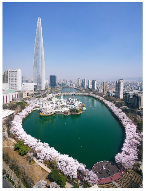 석촌호수는 한강과 가까워 접근성이 좋으며, 호수를 따라 길게 늘어선 벚꽃길이 인상적입니다. 낮에는 푸른 하늘과 벚꽃이 조화를 이루고, 밤에는 조명이 더해져 더욱 낭만적인 분위기를 연출합니다.