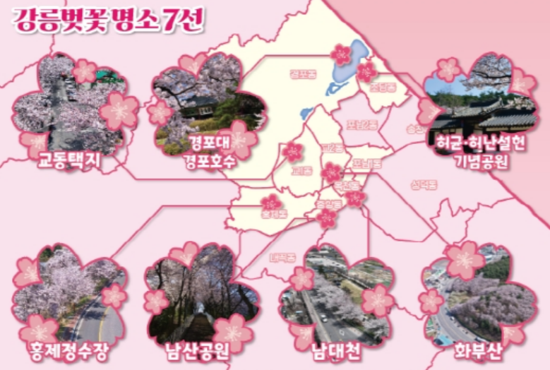 경포대 주변은 벚꽃뿐만 아니라 바다와 호수까지 함께 즐길 수 있는 명소입니다. 벚꽃이 만개할 무렵, 경포호를 한 바퀴 돌며 벚꽃을 감상하는 것이 추천됩니다.