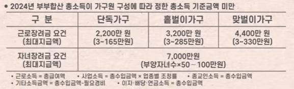 2025년 기준 소득요건은 아래와 같습니다.
