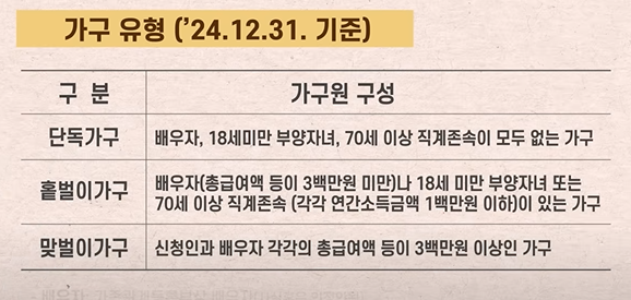 신청 가구는 다음 세 가지 유형 중 하나에 해당해야 합니다.