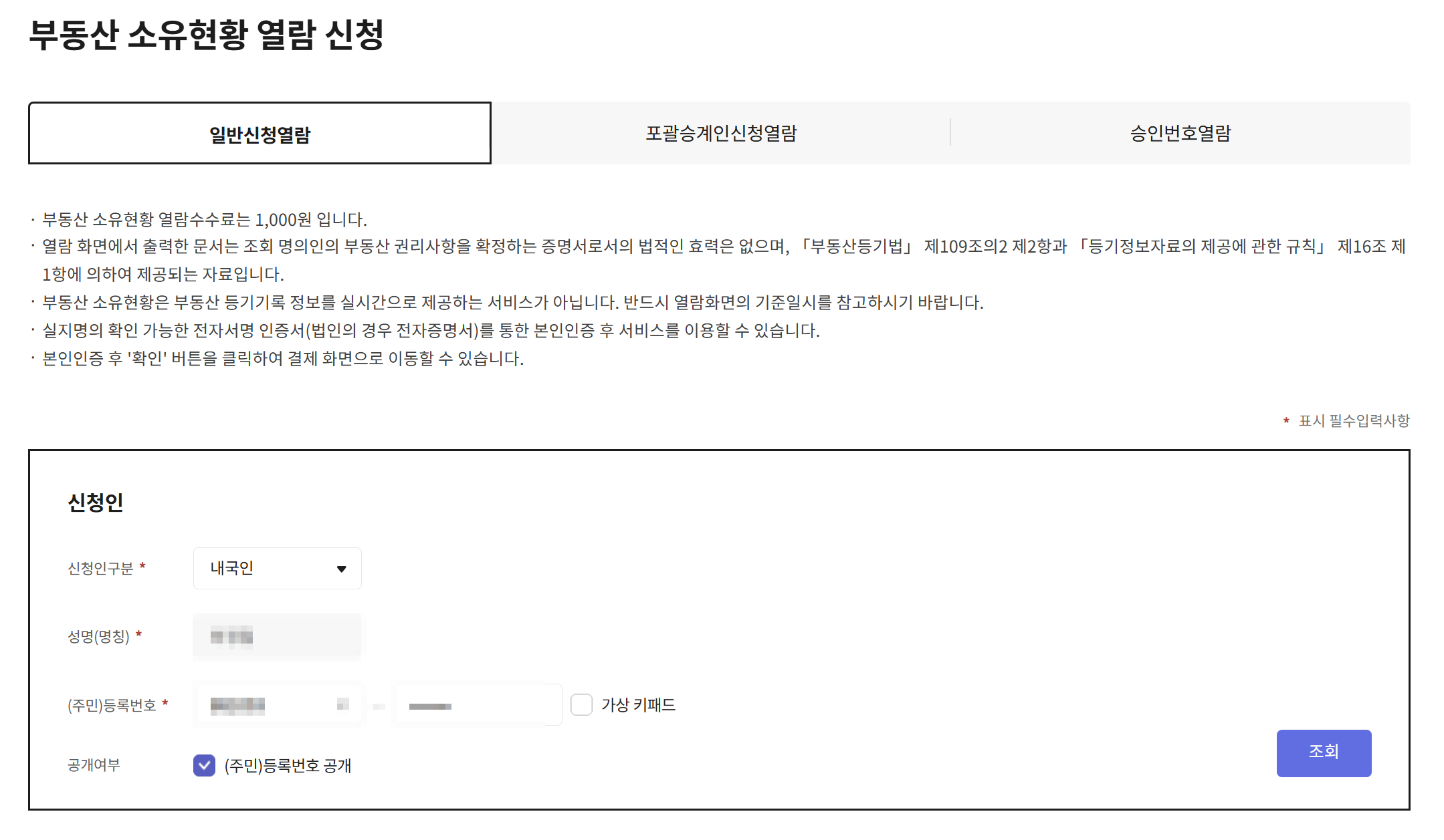 - '열람, 발급' > 부동산 > 소유현황 열람