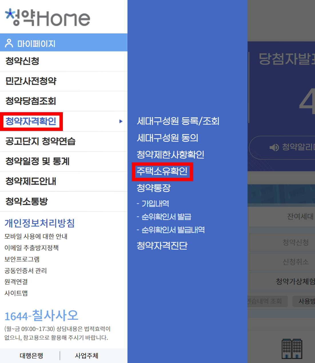 - 메뉴란 청약자격확인 > 주택소유확인